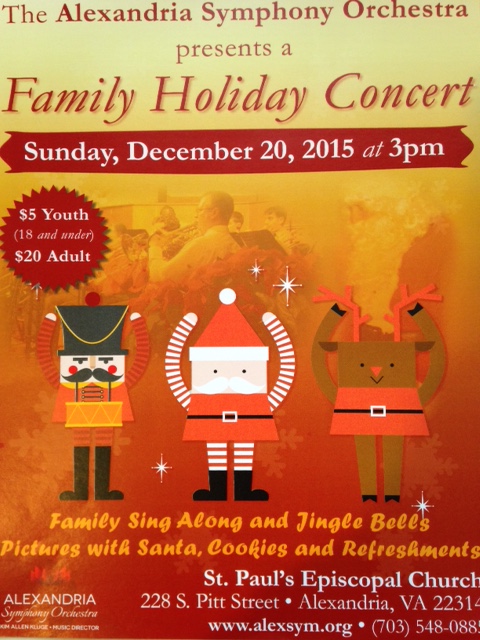 Alexandria’s very own symphony orchestra will present a holiday concert on Sunday, December 20, at the historic St. Paul’s Church (228 S. Pitt Street in Old Town).