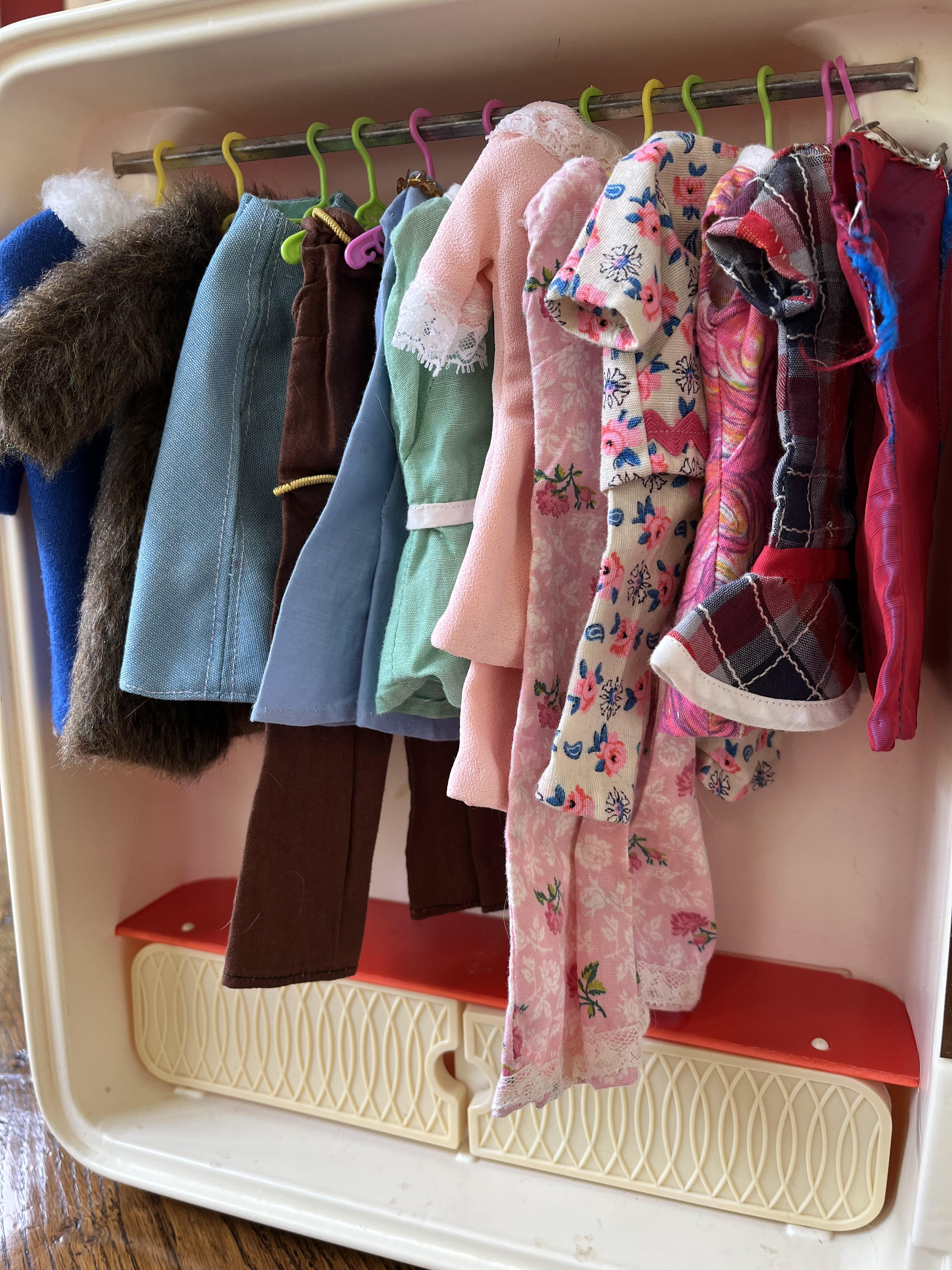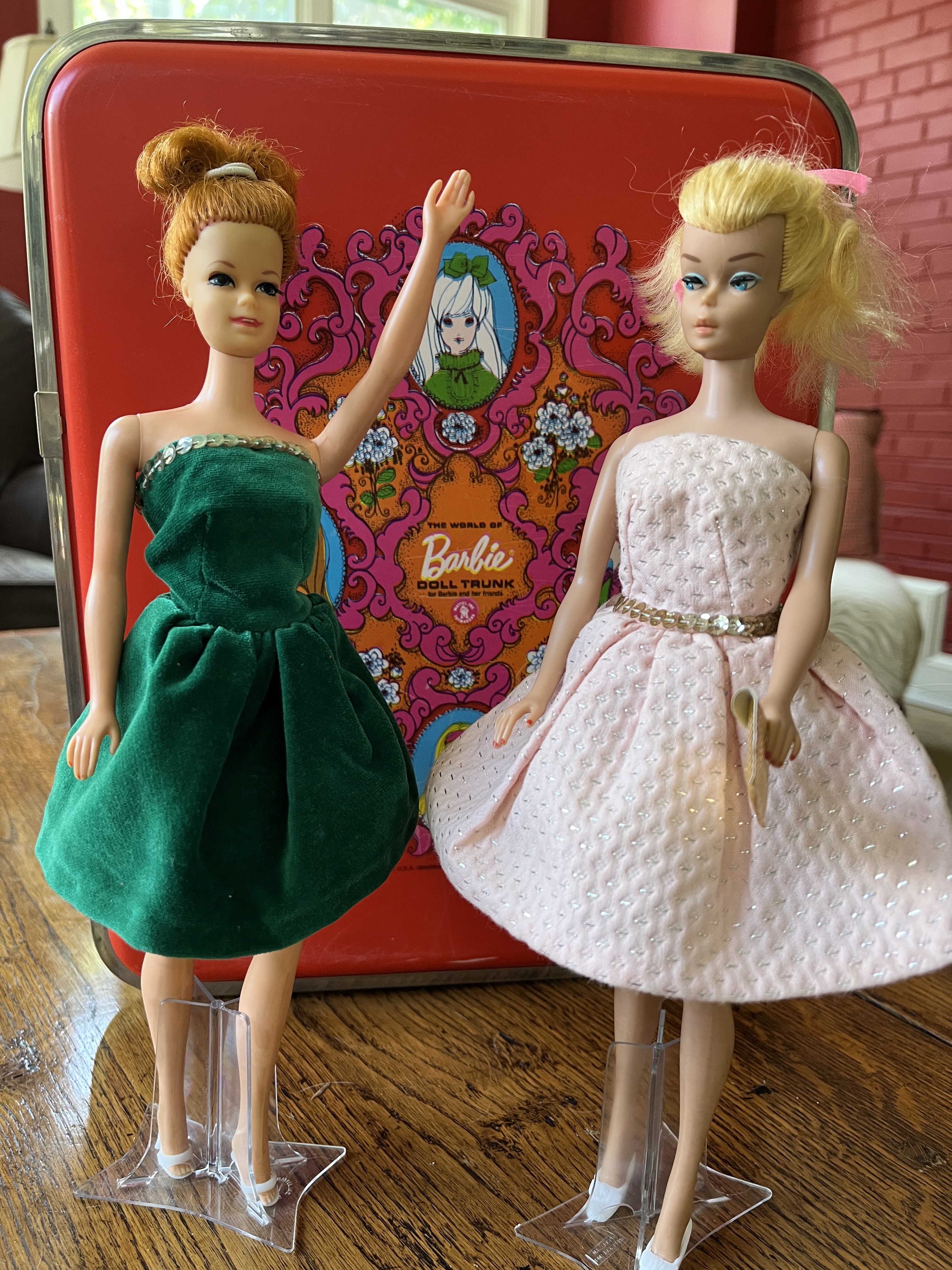 But there is a common thread across the three generations: Louise’s custom-made doll clothes. When she became a grandmother to twin girls rather later in life than she undoubtedly preferred, she fired up the sewing machine again for baby doll and American Girl doll clothes as well as over-the-top Halloween costumes (including doll-size versions of those, too). They were all made with the same love and affection as my Barbie clothes and will be similarly treasured for decades to come.