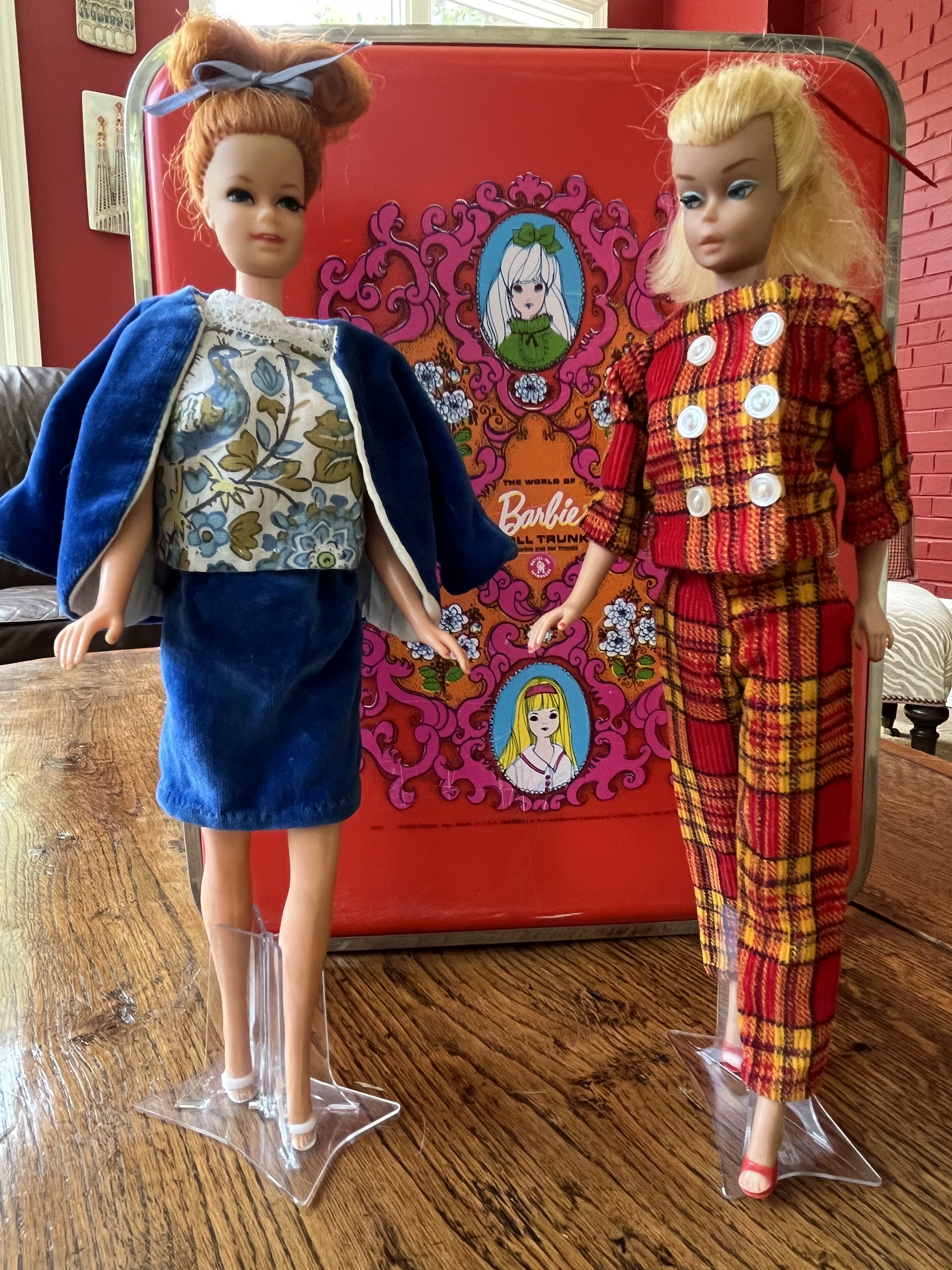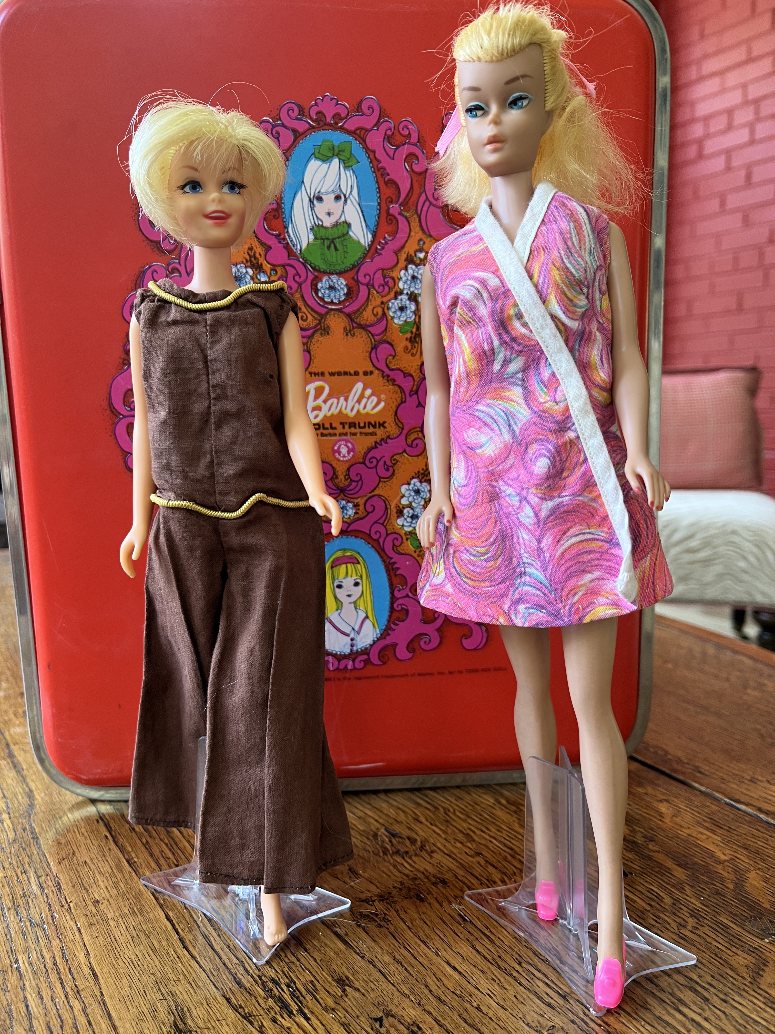 Some important Barbie genealogy here: Barbie had a little sister named Skipper. She also had a “mod” cousin named Francie, which was introduced in 1966. Francie had a friend named Casey who entered the scene in 1967. Both Francie and Casey were shorter and less endowed than Barbie but taller than Skipper, so most likely between the two in age. I was particularly fond of my Casey doll.